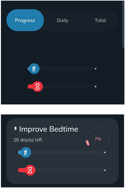 It would be useful if the progress charts in the screenshots below for the goal would show the percentage of the month that has elapsed and the percentage of the progress toward the goal, so that there are numbers to compare against each other.