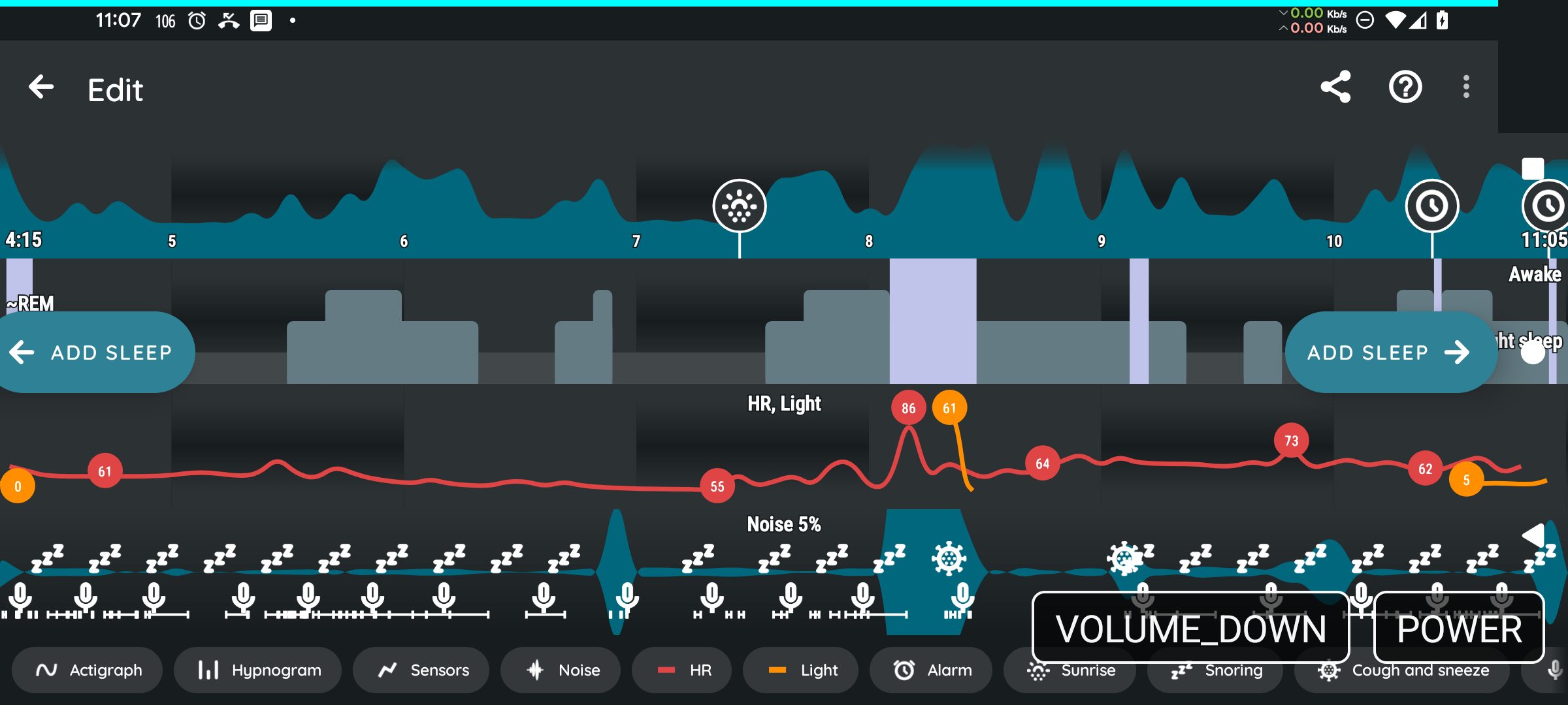 Which awake-like events could have the app estimate better? Were you using the phone? Can we try increasing the HR awakes? It is quite unusual that the awake state at 07:00 was not associated with even the slightest change in the resting HR.