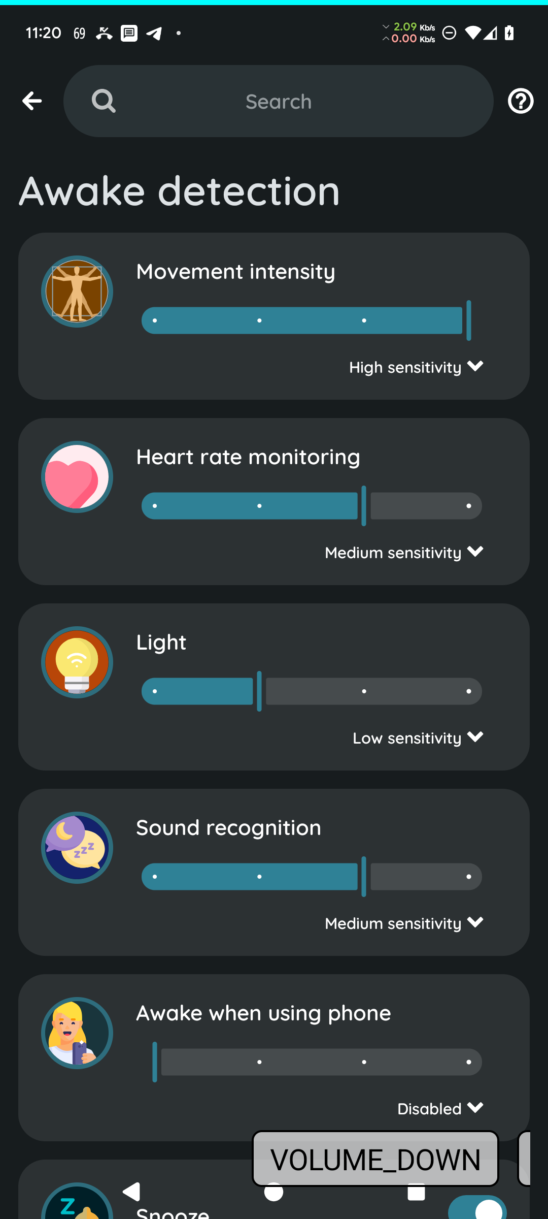 What are your current awake sensitivity levels in Settings → Sleep tracking → Awake detection? Could we try fine-tuning the sensitivity levels? What awake-like events can the app read from the environment?