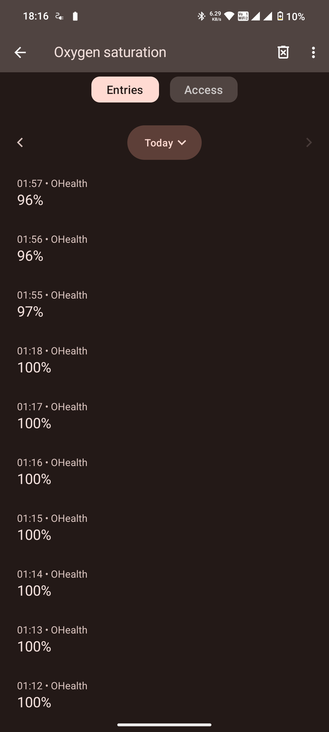 For reference, here’s the oxygen saturation data in my health connect which is being written by ohealth.