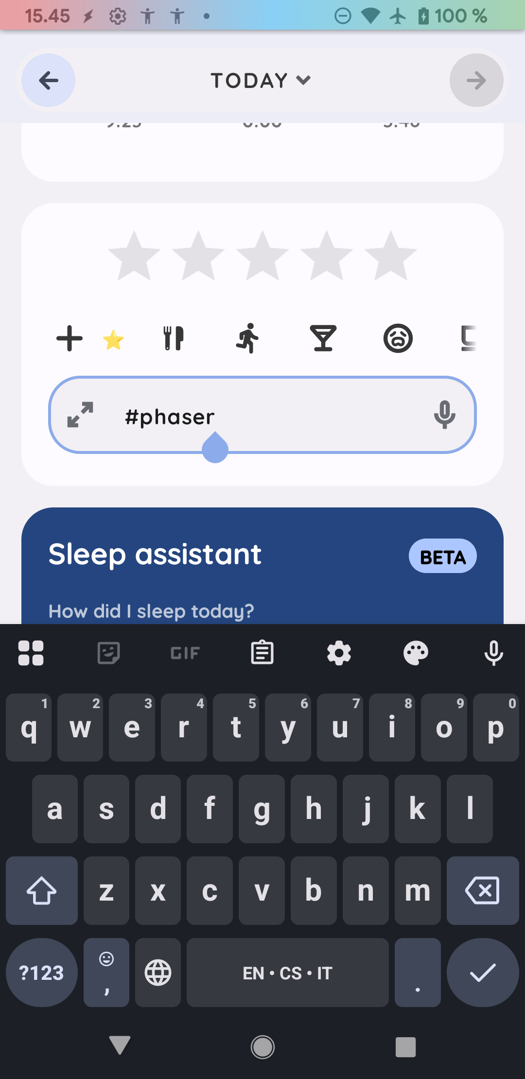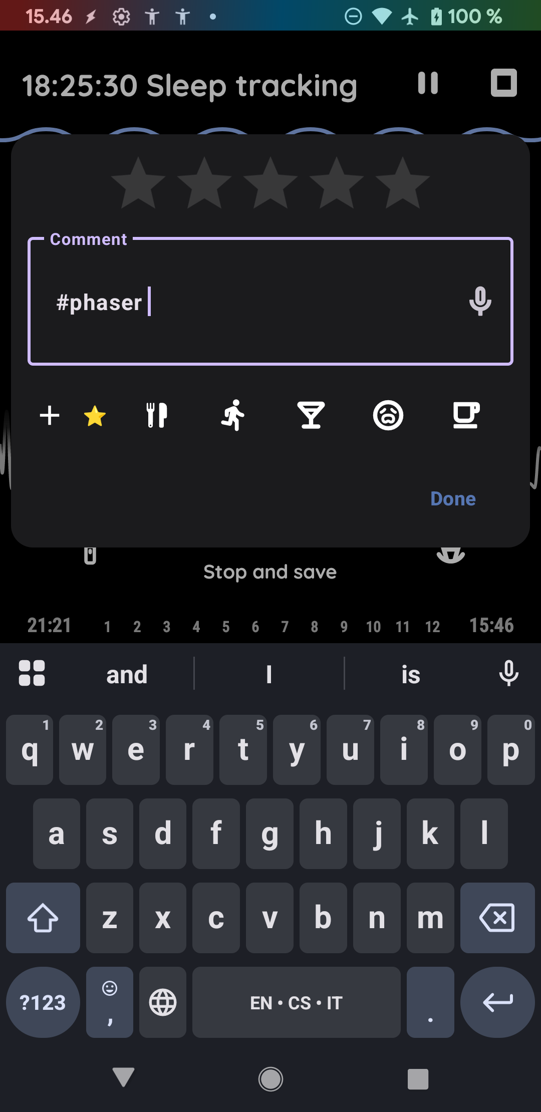 I am not talking about the main screen tagging. That field is never far enough down the screen to be dusrupted by this issue. I’m talking about the tagging/notes field while listening to sleep recordings. I am using a traditional Android keyboard (GBoard).